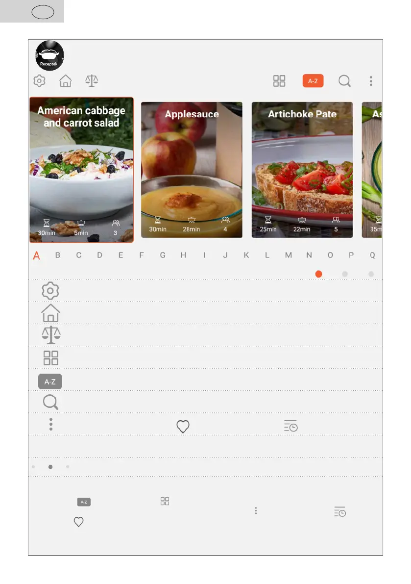 Keresse meg a főzni kívánt receptet! Receptekben való mozgáshoz húzza az ujját a kijelzőn!