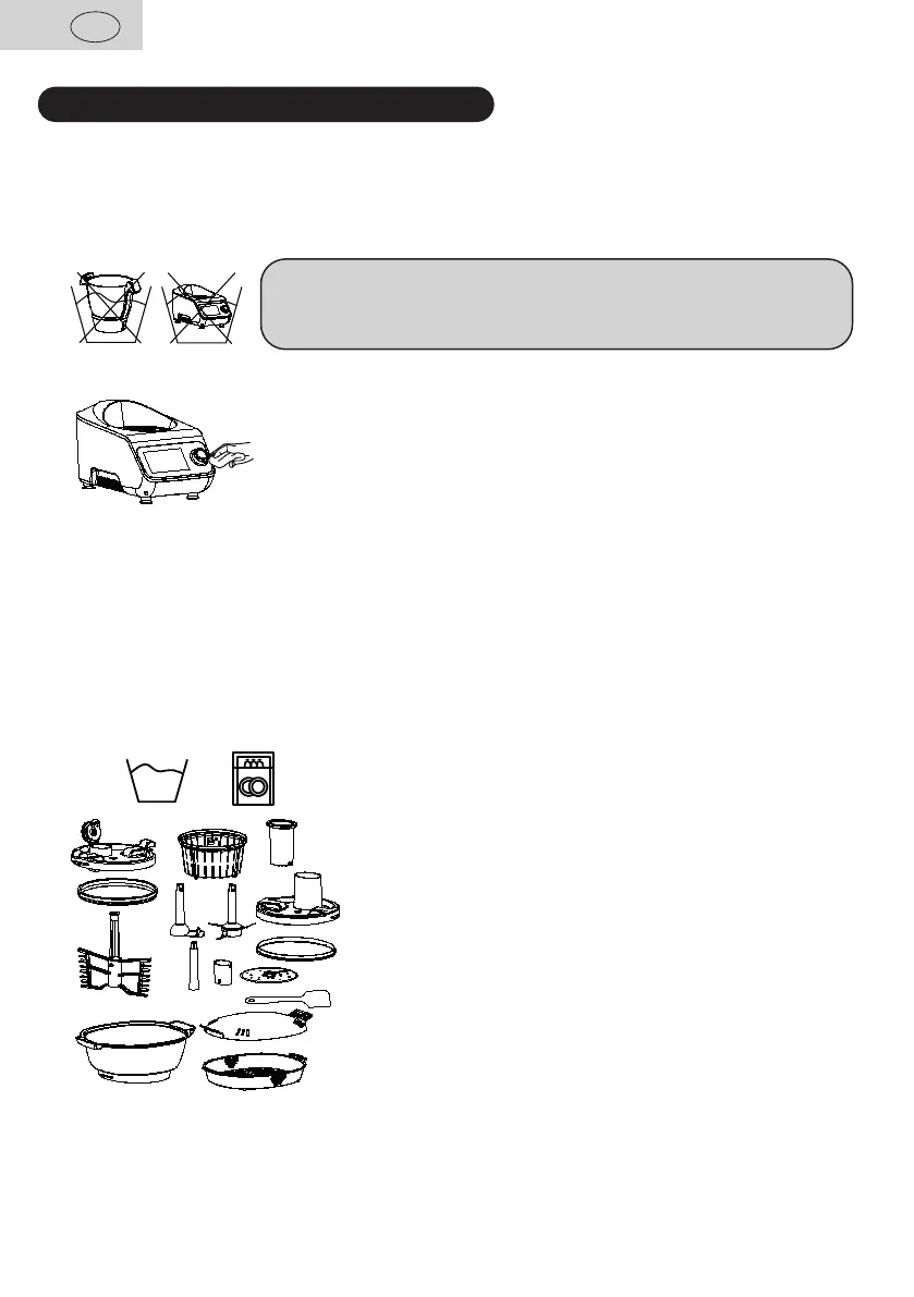 • Vor der Reinigung den Deckel und das Zubehör vom Gefäß abnehmen.