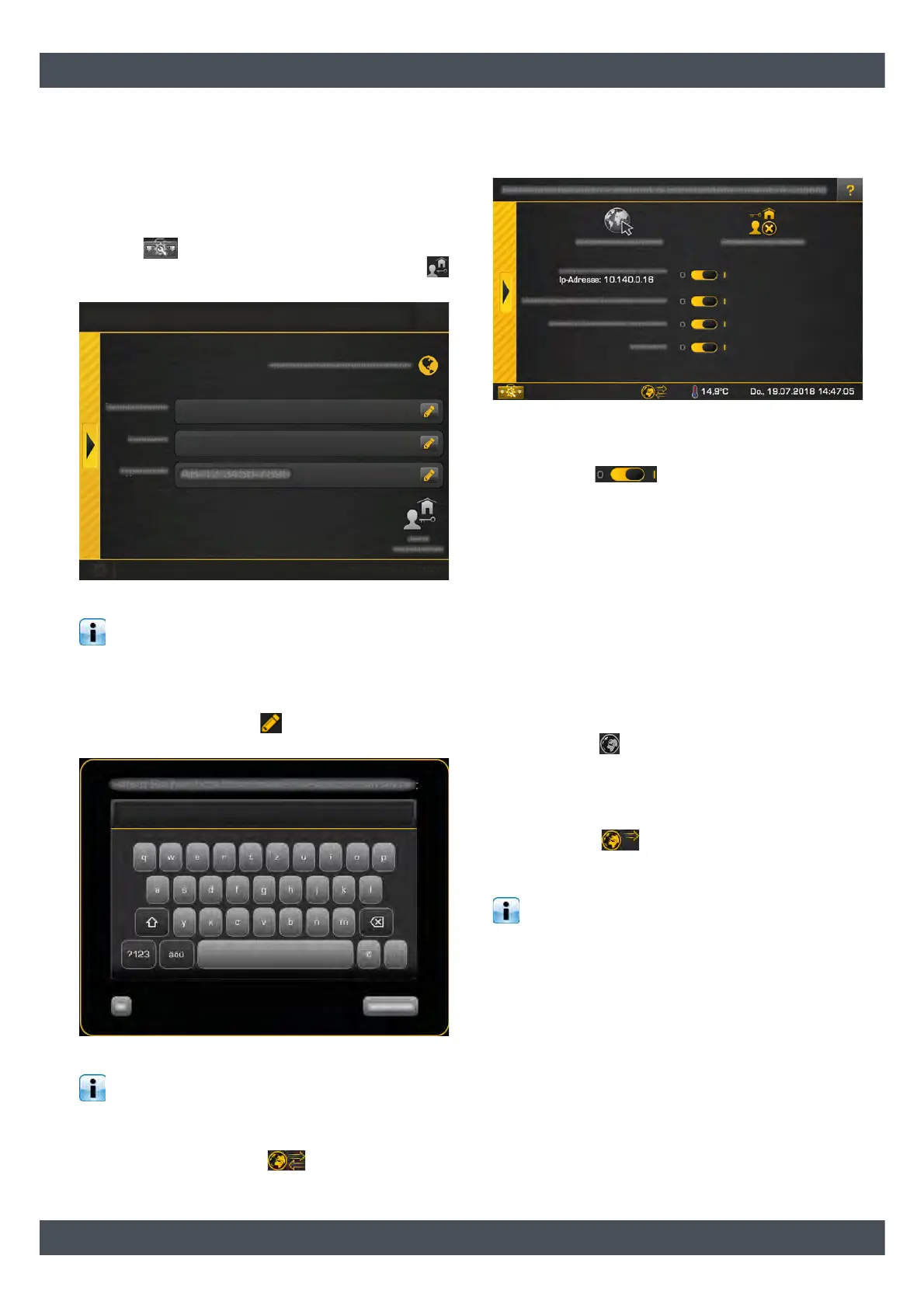 fields. To enter, press the symbol to open the on-