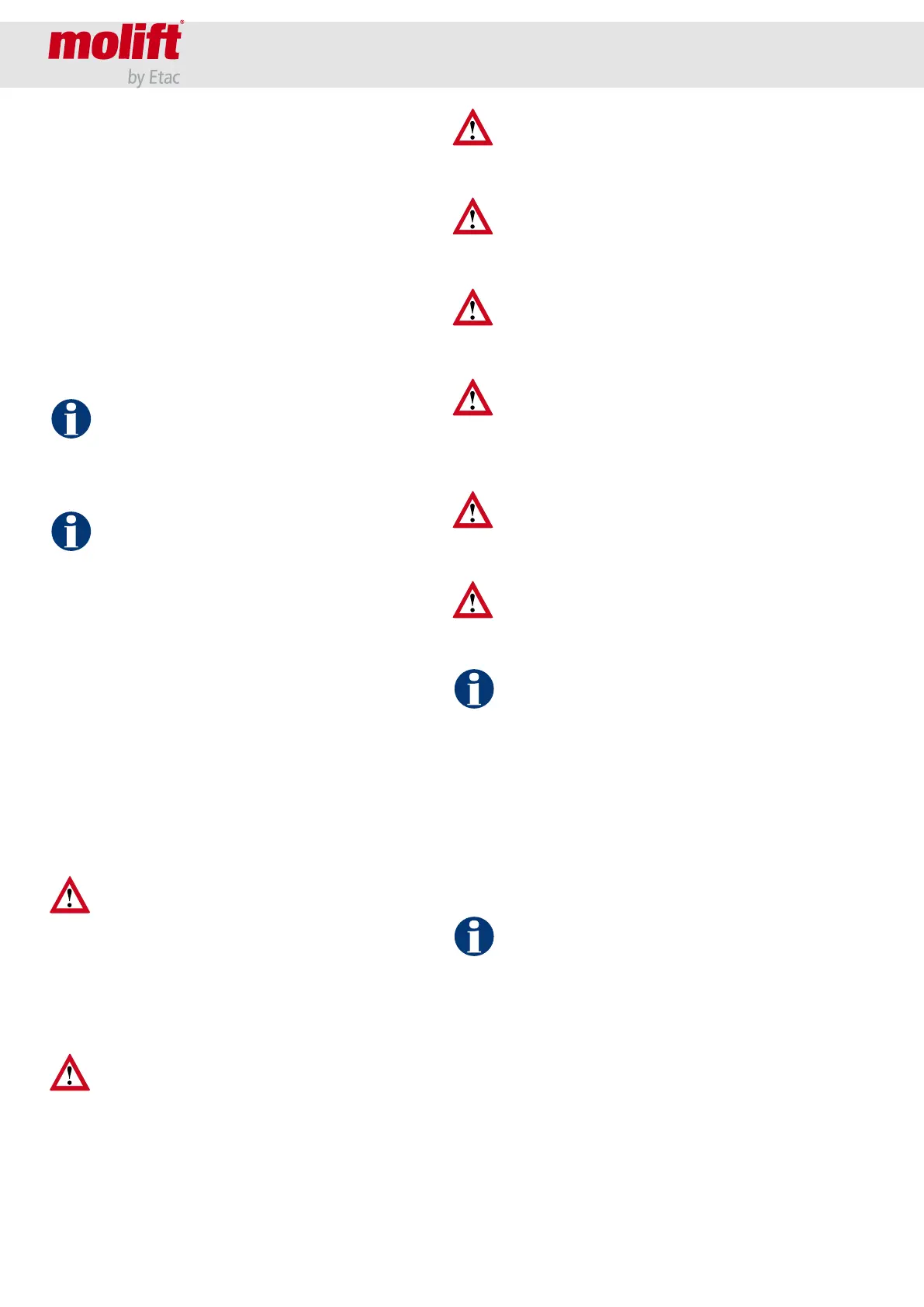 regards to safety. A Molift Quick Raiser shall only