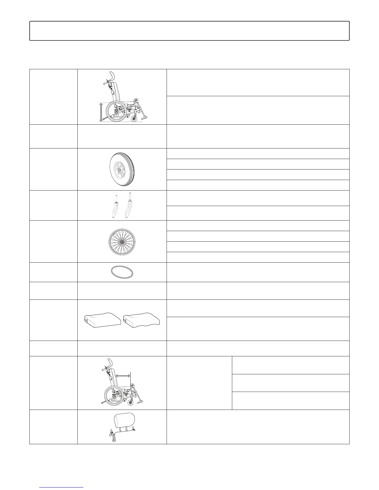 In the "Chair options" section you can see all configurations available for the wheelchair. For more information about chair options, see www.