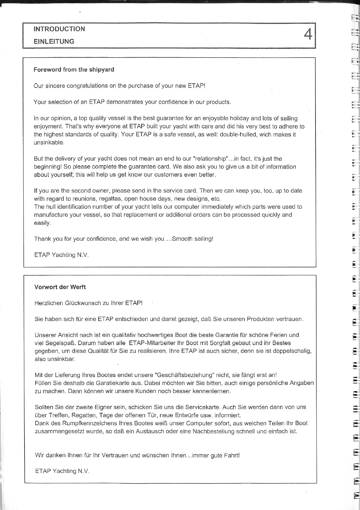 ETAP 24 i - Introduction; Foreword from the shipyard