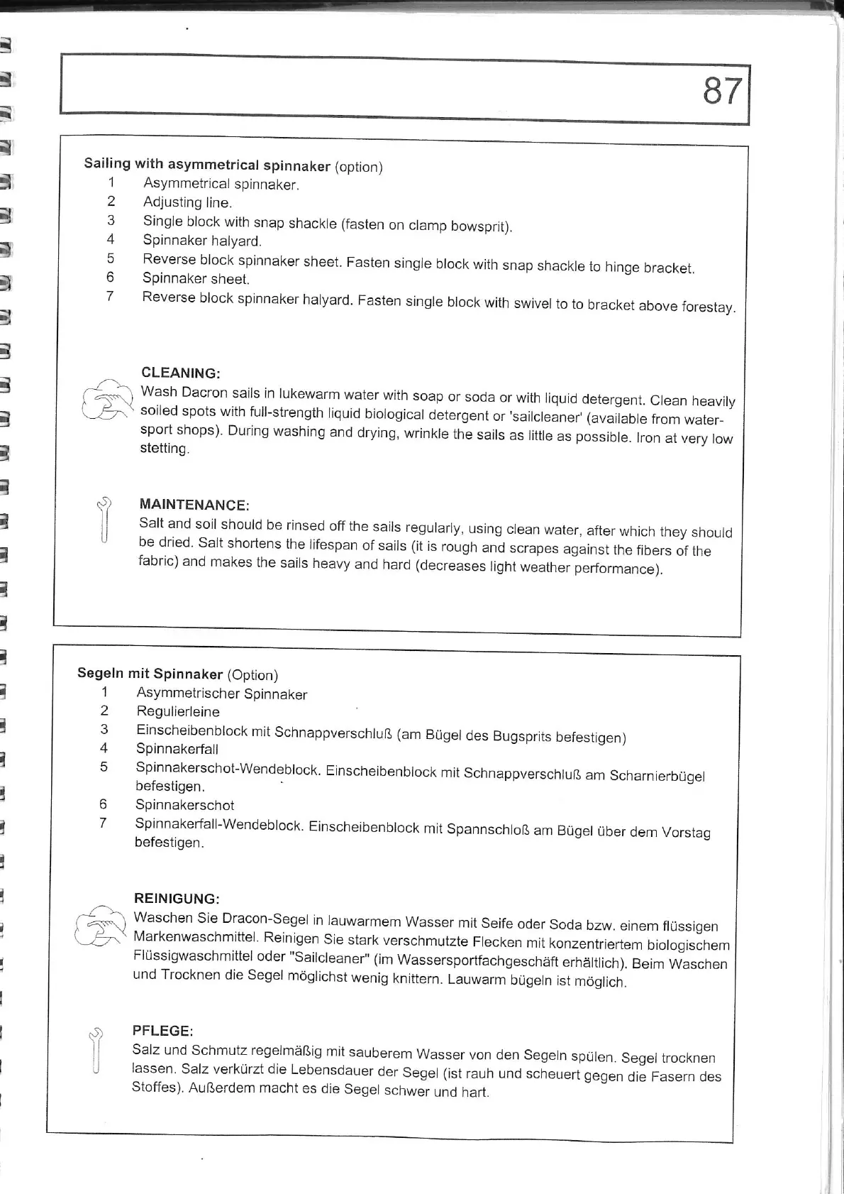 ETAP 24 i - Sailing with Asymmetrical Spinnaker (Optional); Cleaning Sails; Maintenance of the Sails