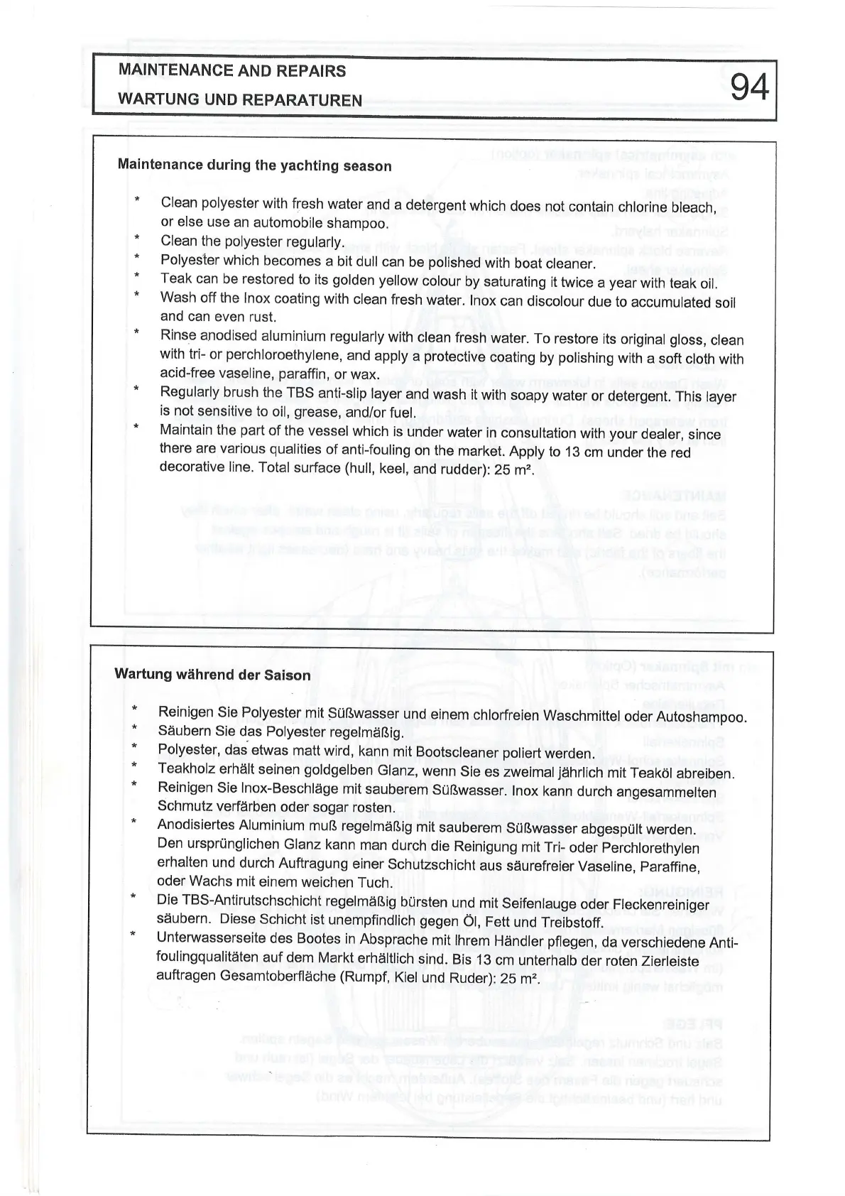ETAP 32S - MAINTENANCE and REPAIRS; Maintenance During the Season