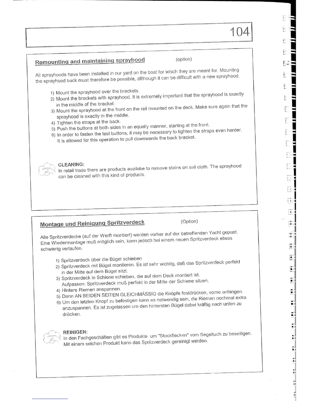 ETAP 37 s - Remounting and Maintaining Sprayhood