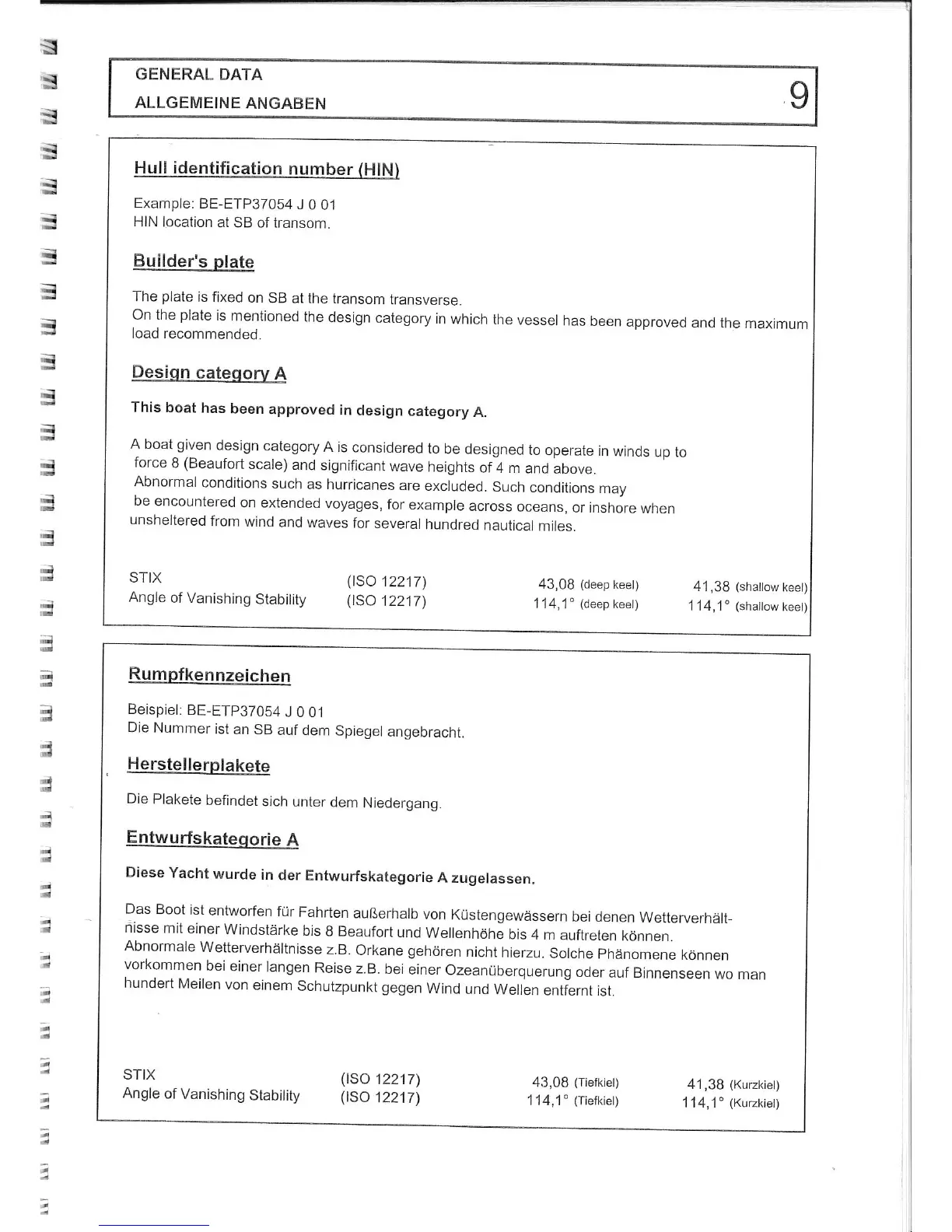 ETAP 37 s - General Data; Hull Identification Number; Builders Plate