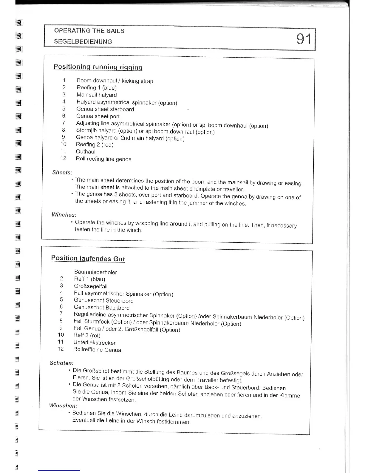 ETAP 37 s - Operating the Sails; Positioning Running Rigging