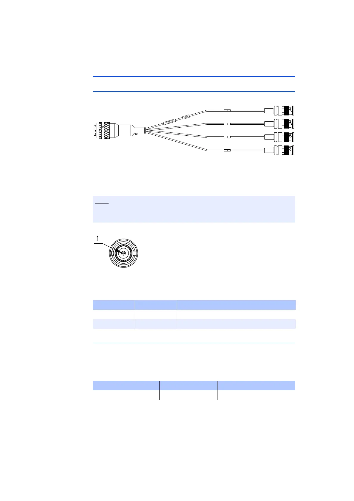 The assignment of the connections of the BNC connector of a cable section to