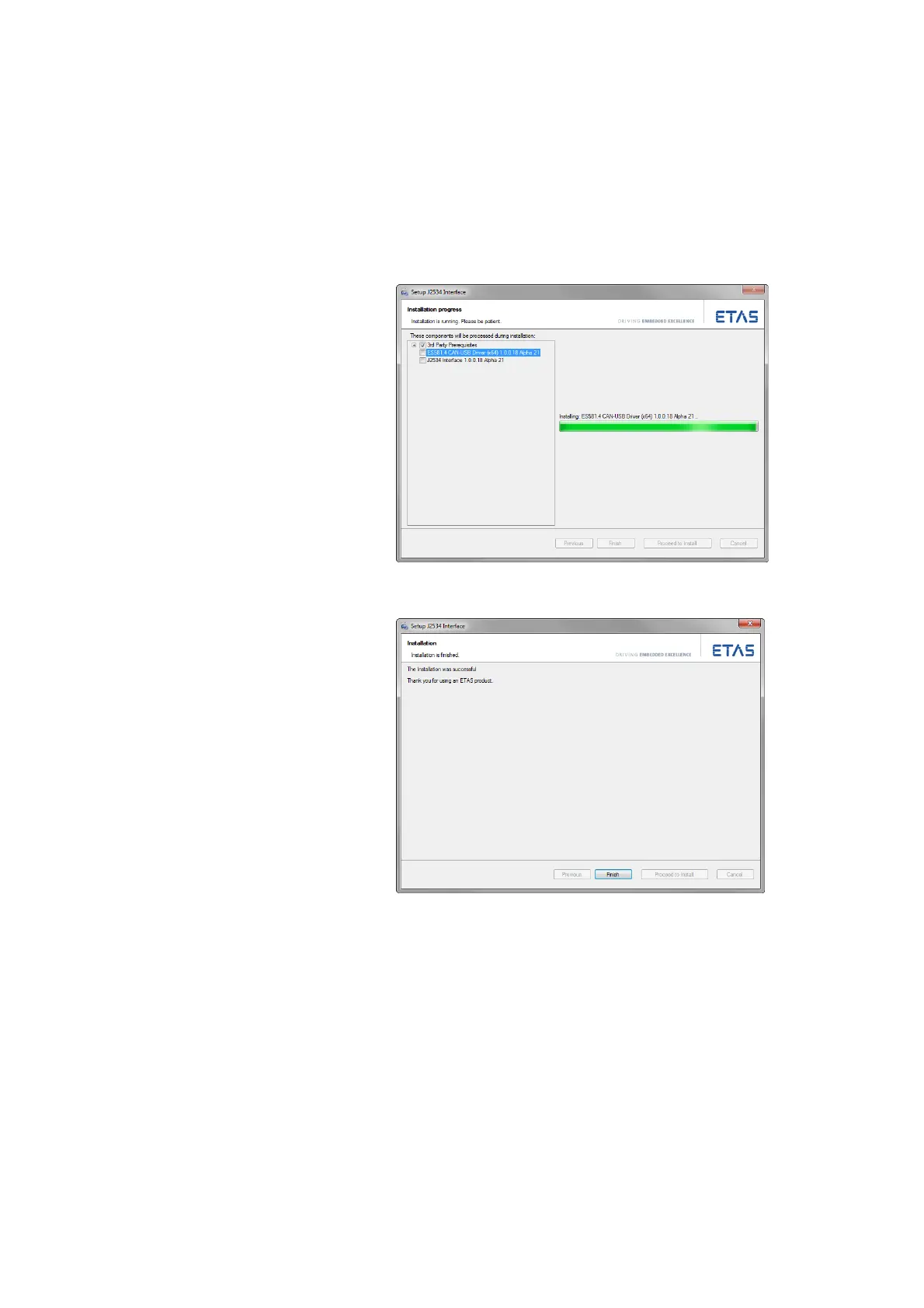 The installation of the ES581.4 J2534 driver is fin-
