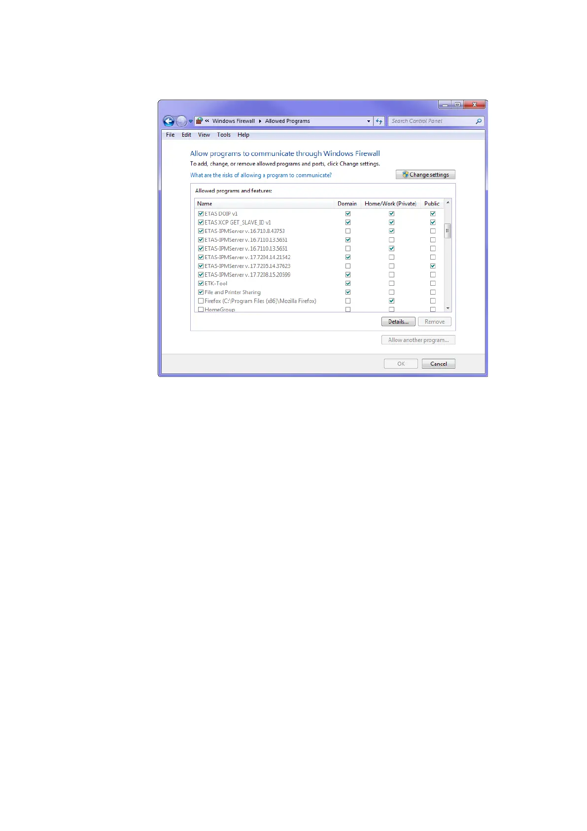 The firewall no longer blocks the ETAS product. The setting is