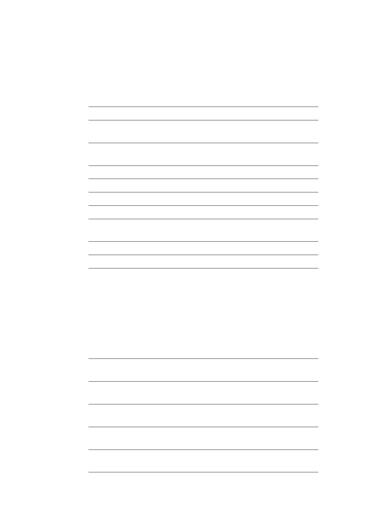 the following table:
