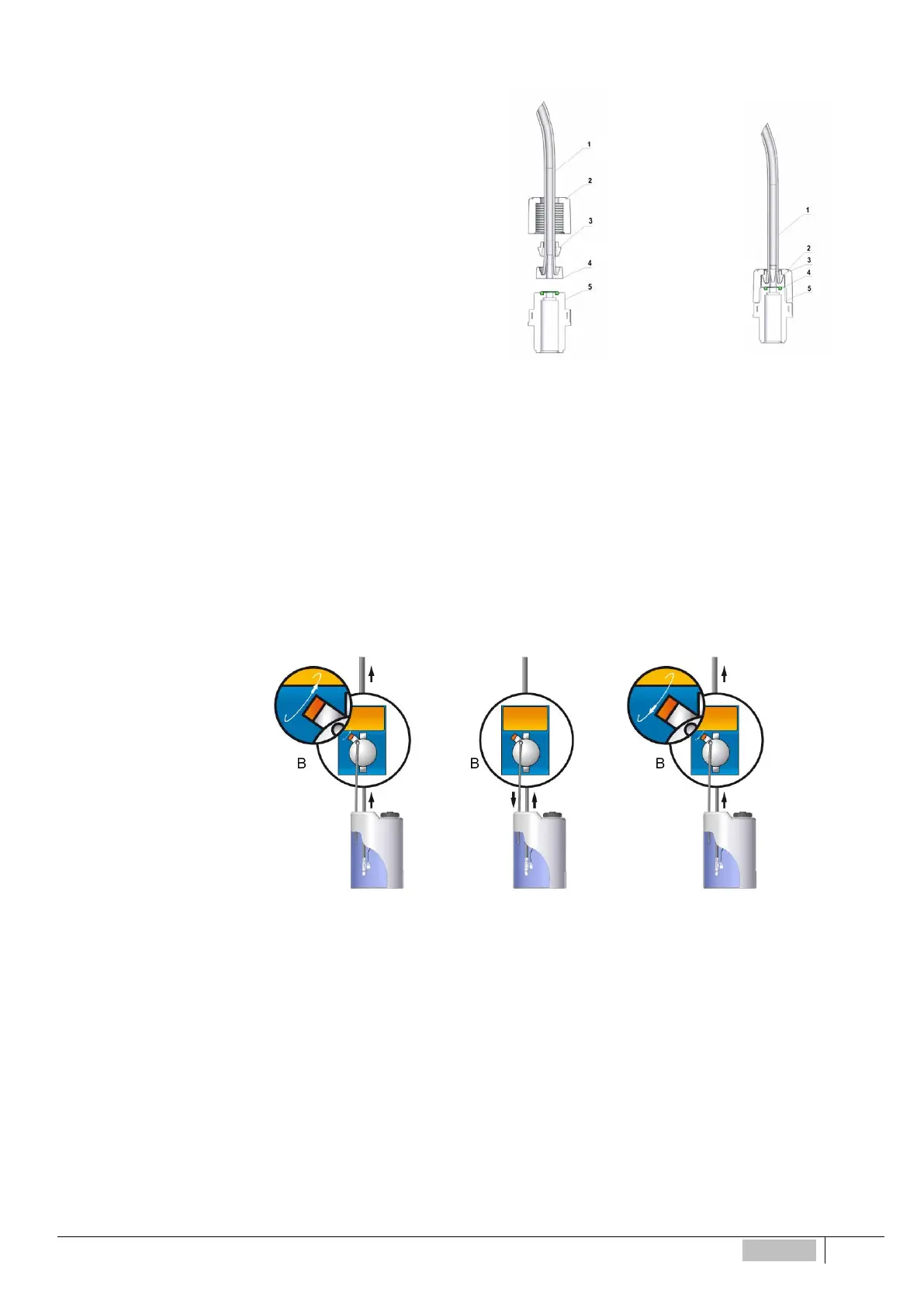 • mantenga abierta la válvula de purga B hasta que salga todo el aire contenido en el tubo y en el cuerpo de la