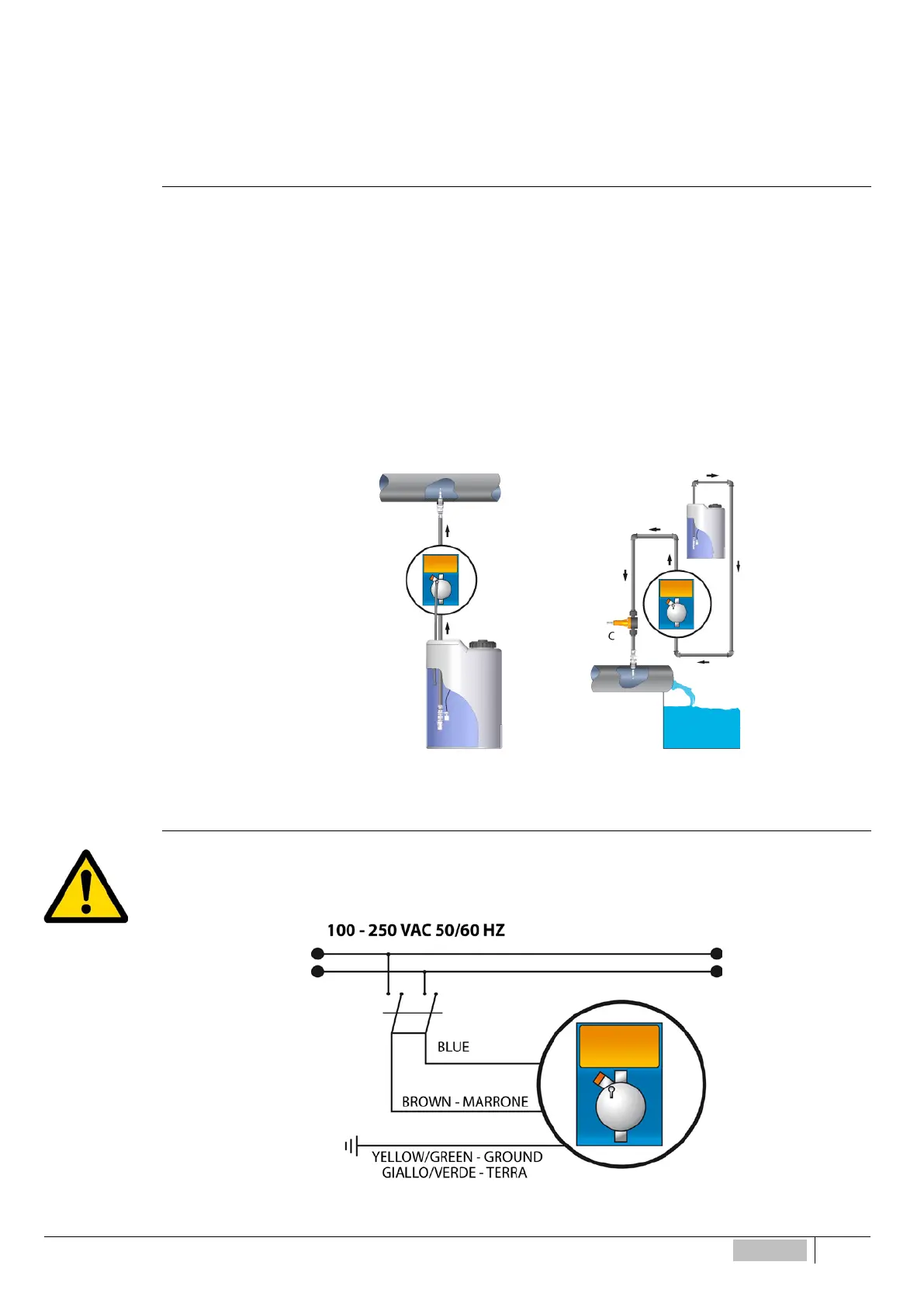 Die Pumpe kann über oder unter dem Flüssigkeitsstand im Behälter montiert werden. Wenn Sie über den Behälter