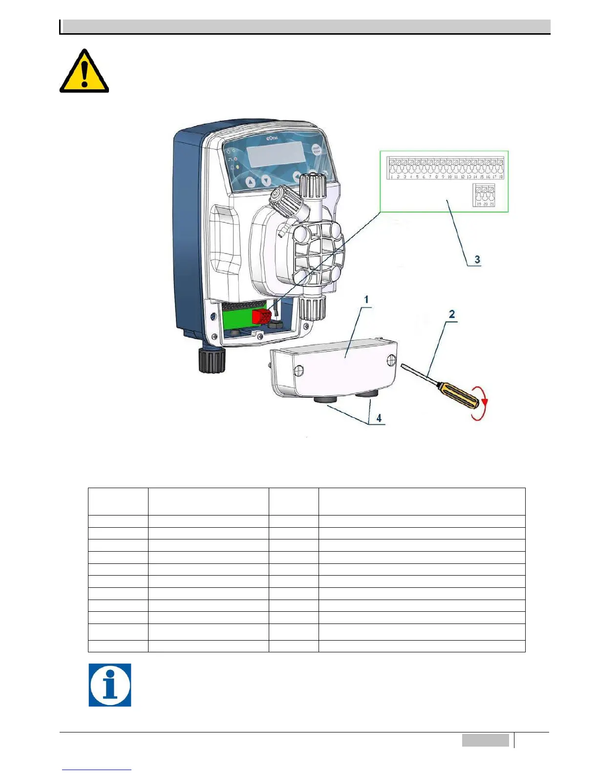 Pour connecter les accessoires et les périphériques à la pompe, il faut déposer le couvercle frontal “1” en intervenant