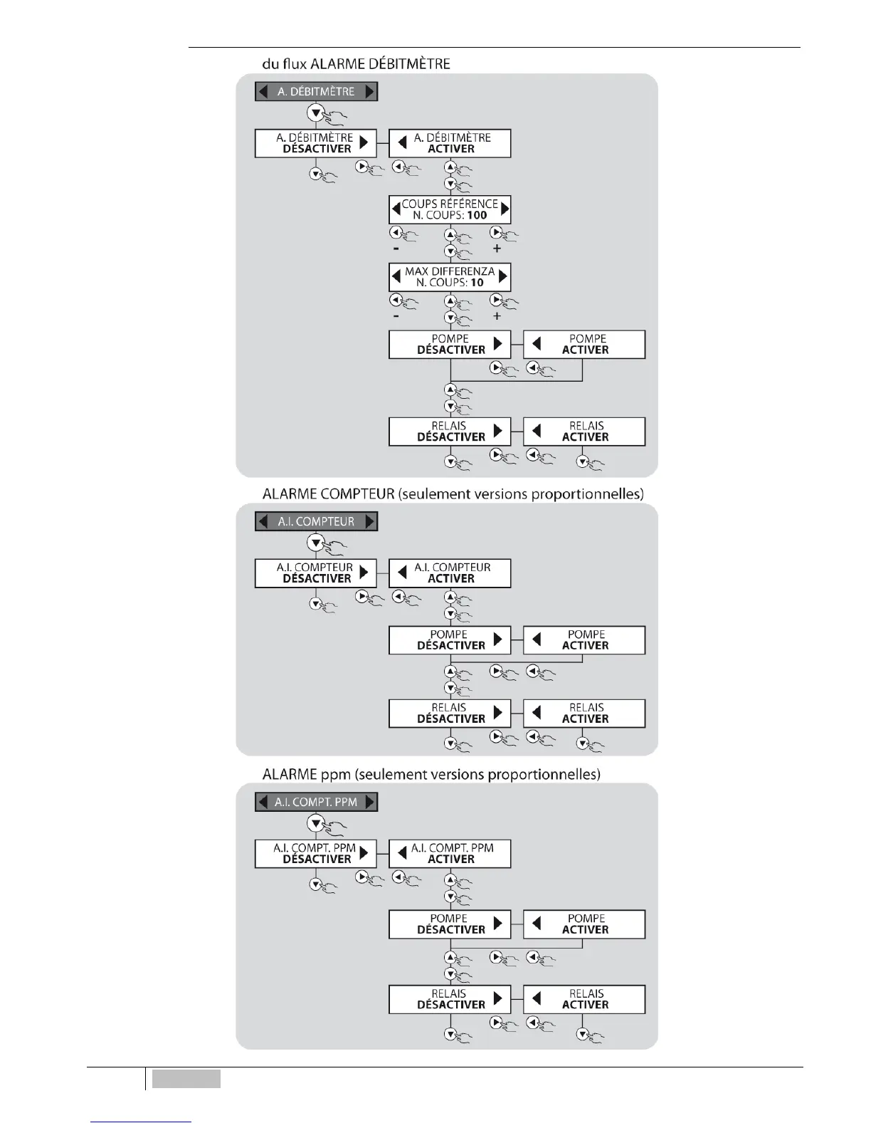 Etatron eOne PLUS - Diagramme du Flux: Alarme Débitmétre, Alarme Compteur, Alarme Ppm
