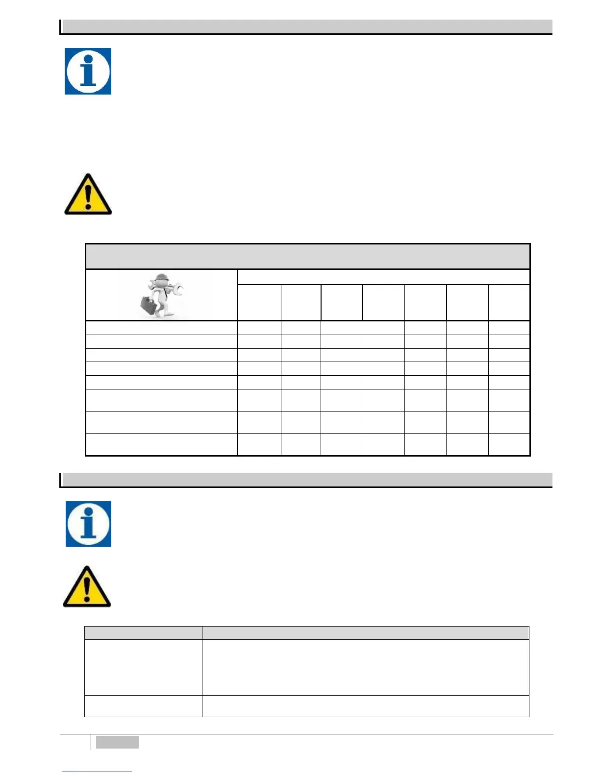 Si ricorda altresì che le tempistiche di manutenzione sotto riportate, sono da considerarsi al solo scopo teorico, la loro