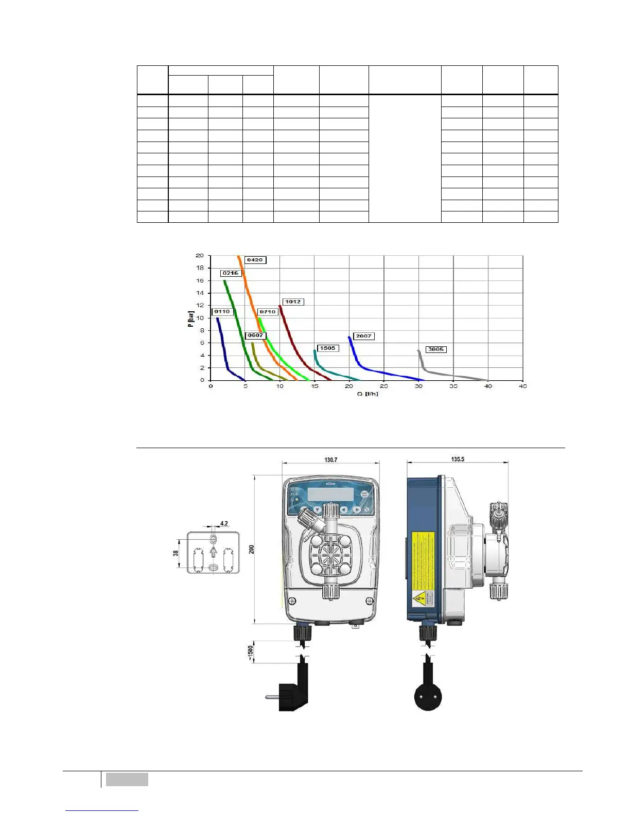 pressure. (excluding the BASIC series). The following table shows the technical features of the eOne series and the
