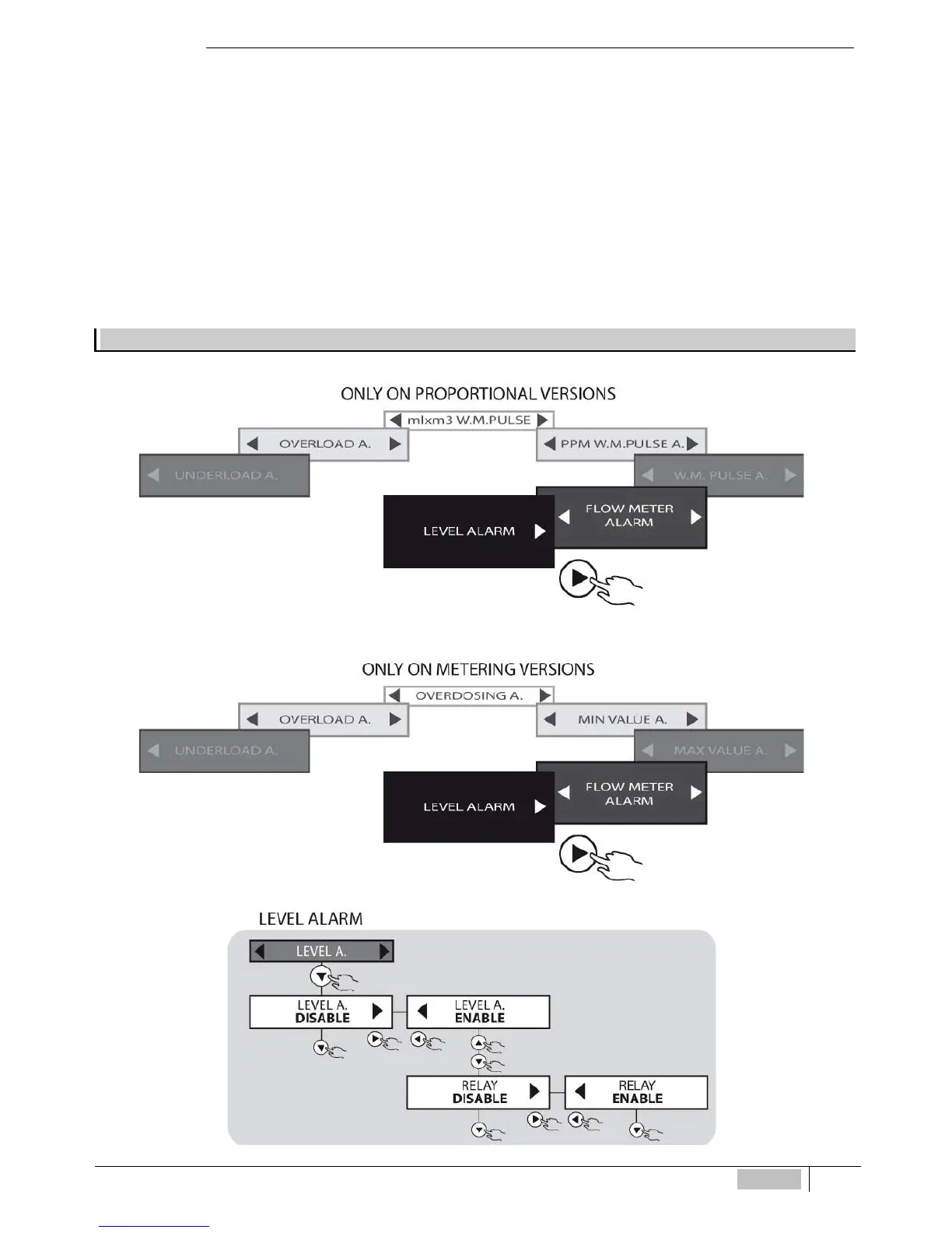 • Meter impulse alarm in ml x m3 (only proportional versions)