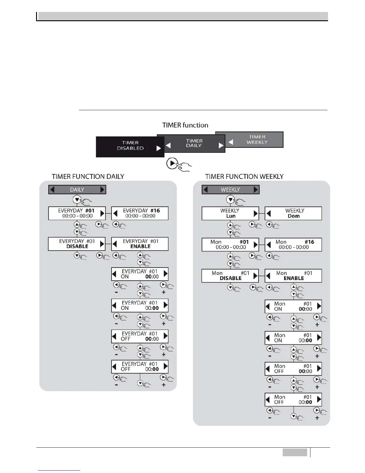 DAILY TIMER By enabling this selection, the user can choose 16 cycles of start and stop throughout the day.