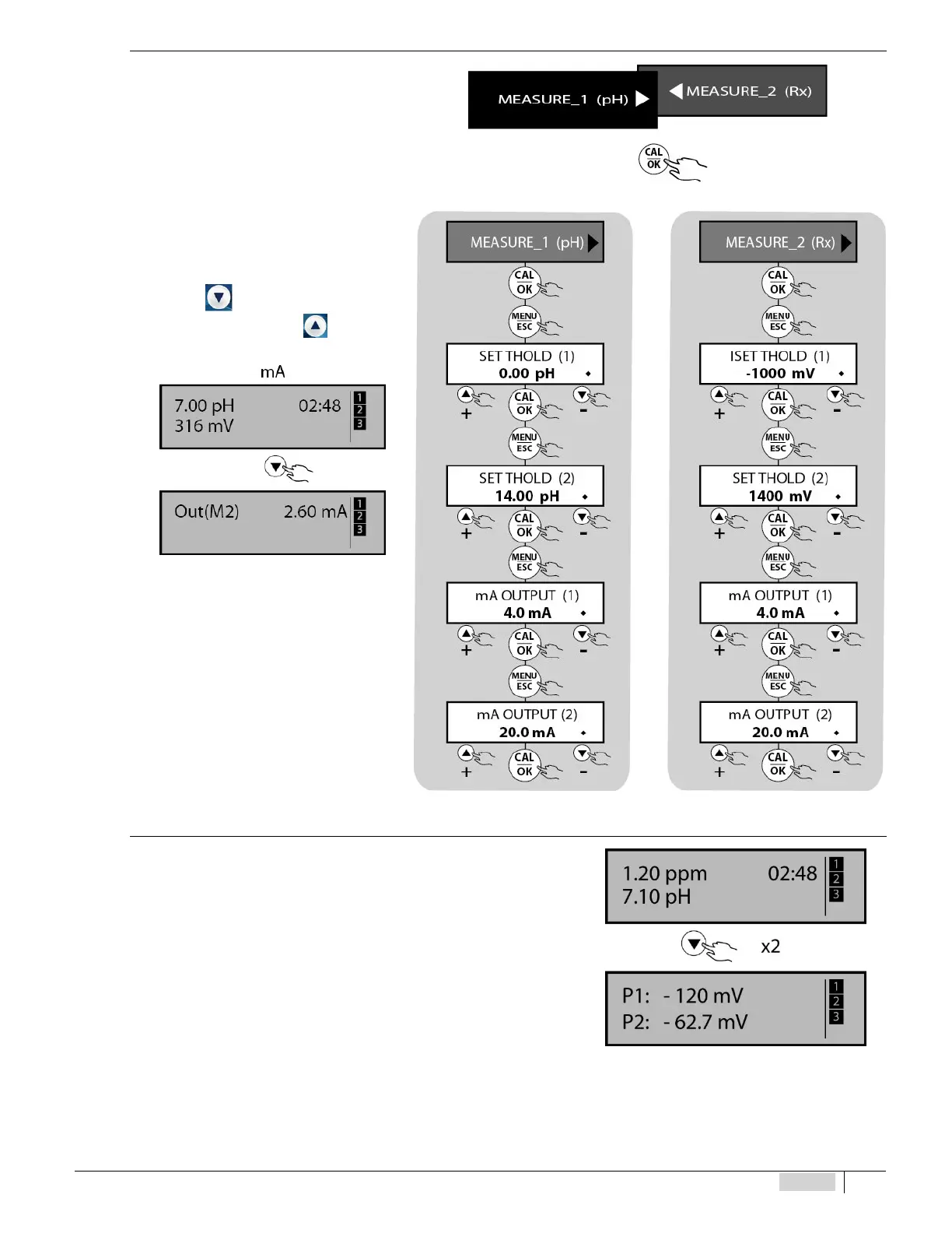 instrument. During the reading of the measurements, press the ARROW LOW