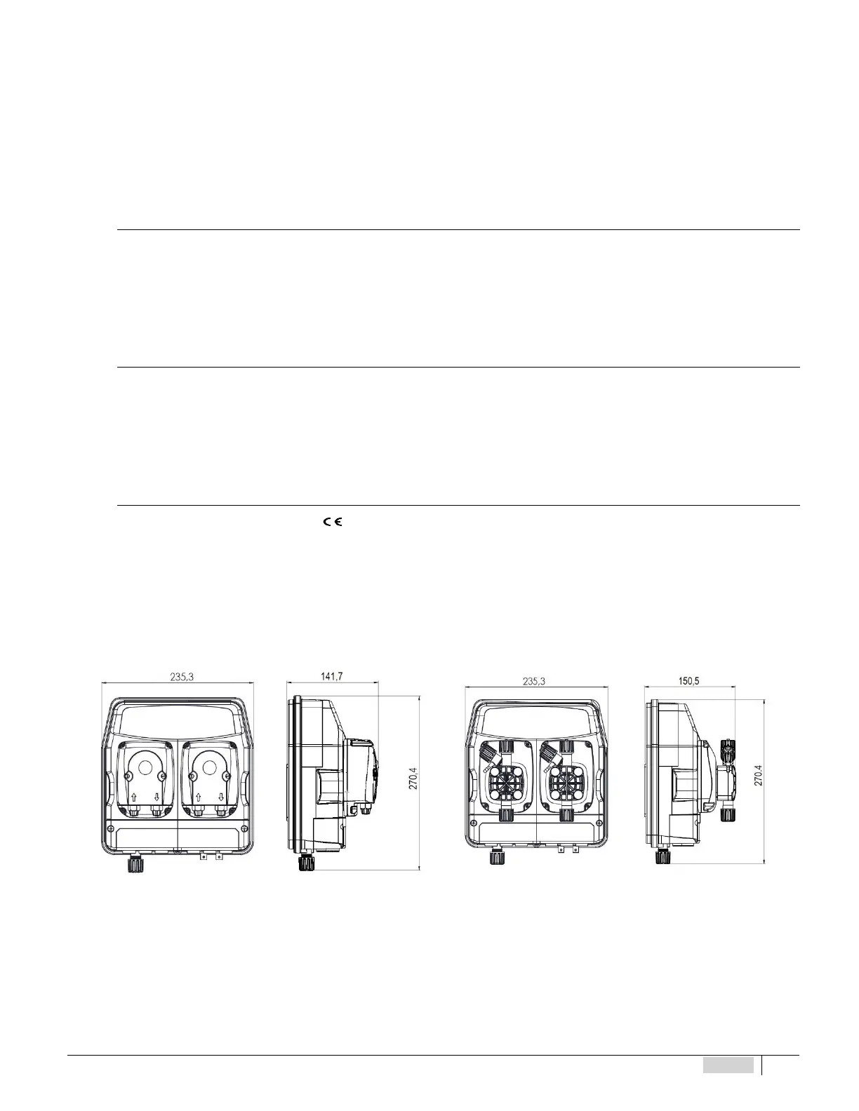 Fig. 1 – Views and dimensions – peristaltic version Fig. 2 – Views and dimensions – electromagnetic version