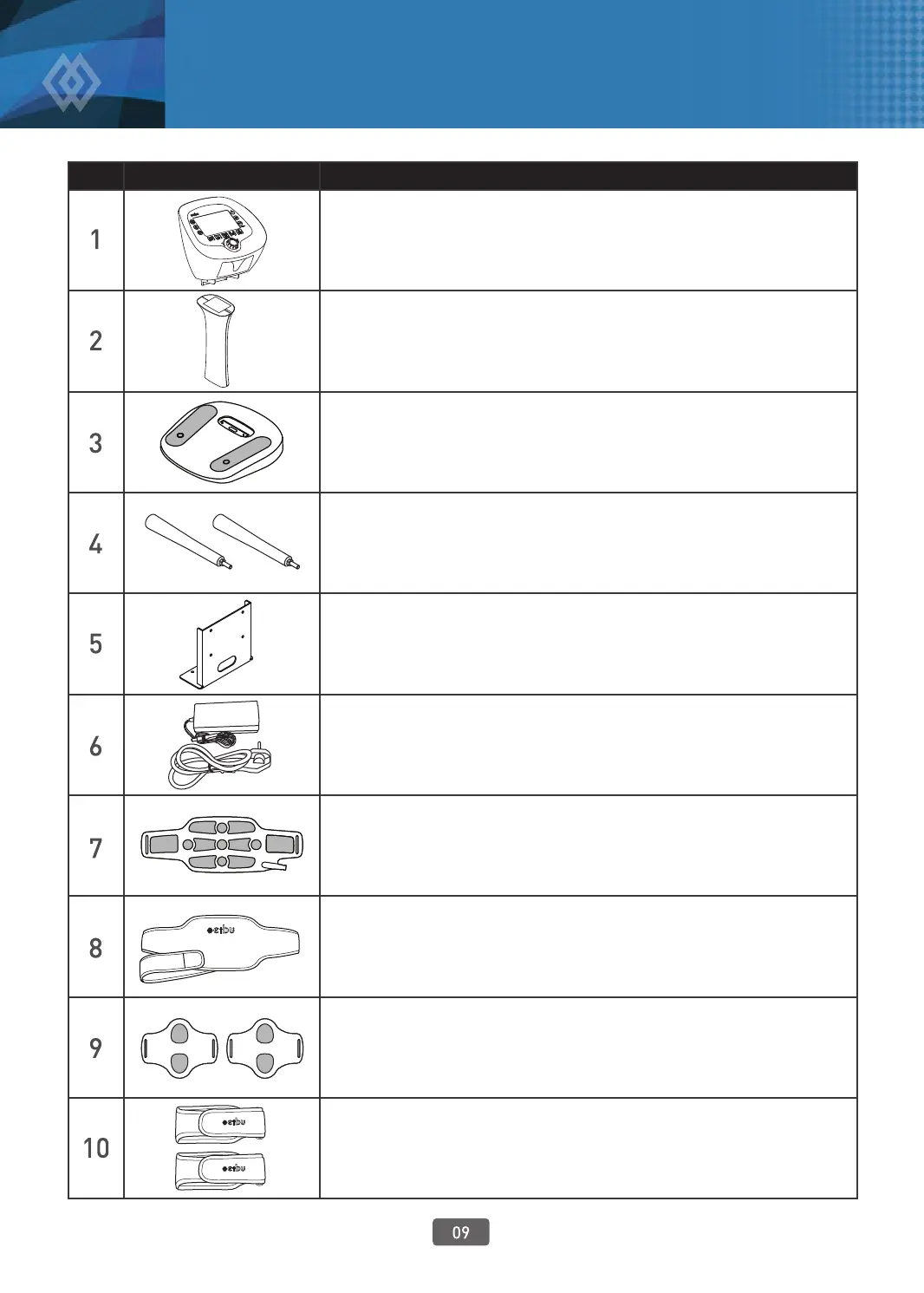 mode selection by pad, adjustment of intensity, thermal on/o,