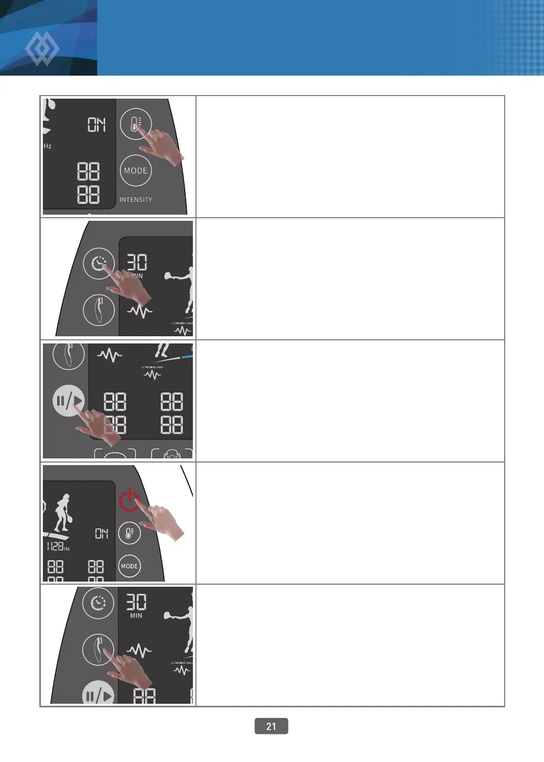 When you want to adjust the use time, touch the button, and then