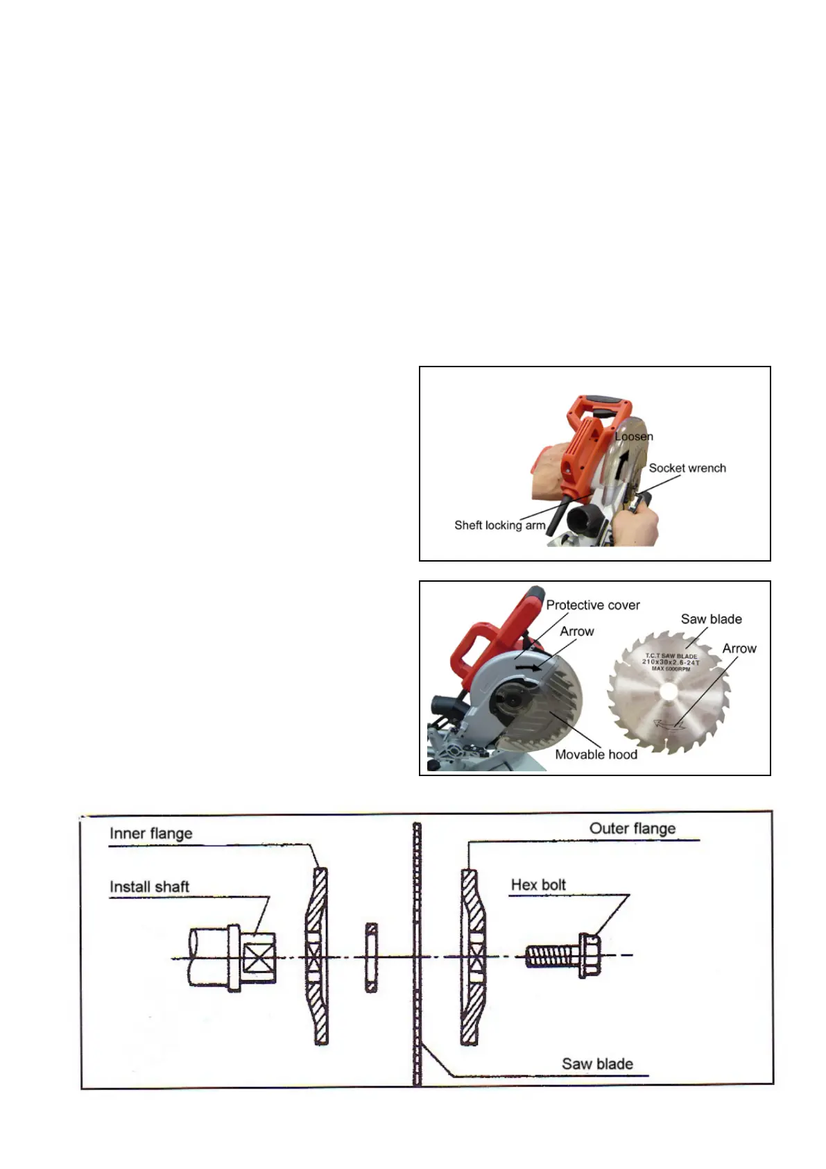 § Do not use flanges or flange nuts with bores larger or smaller than those of the saw blade.