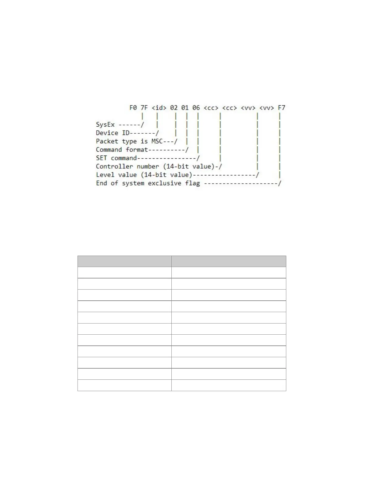 bit values, a combination of two 7-bit values. Both in <cc> <cc> and <vv> <vv> the first value is the