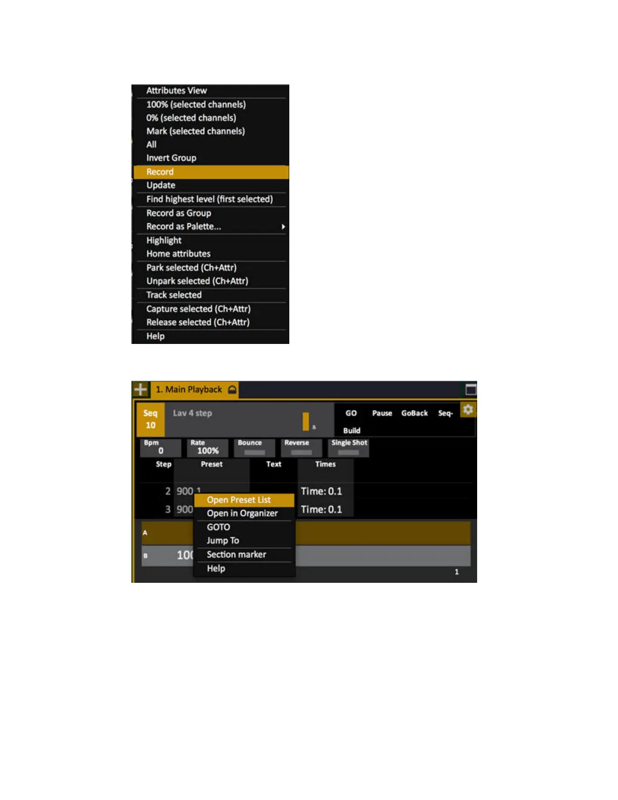 In the Playback tab over a preset it looks like this: