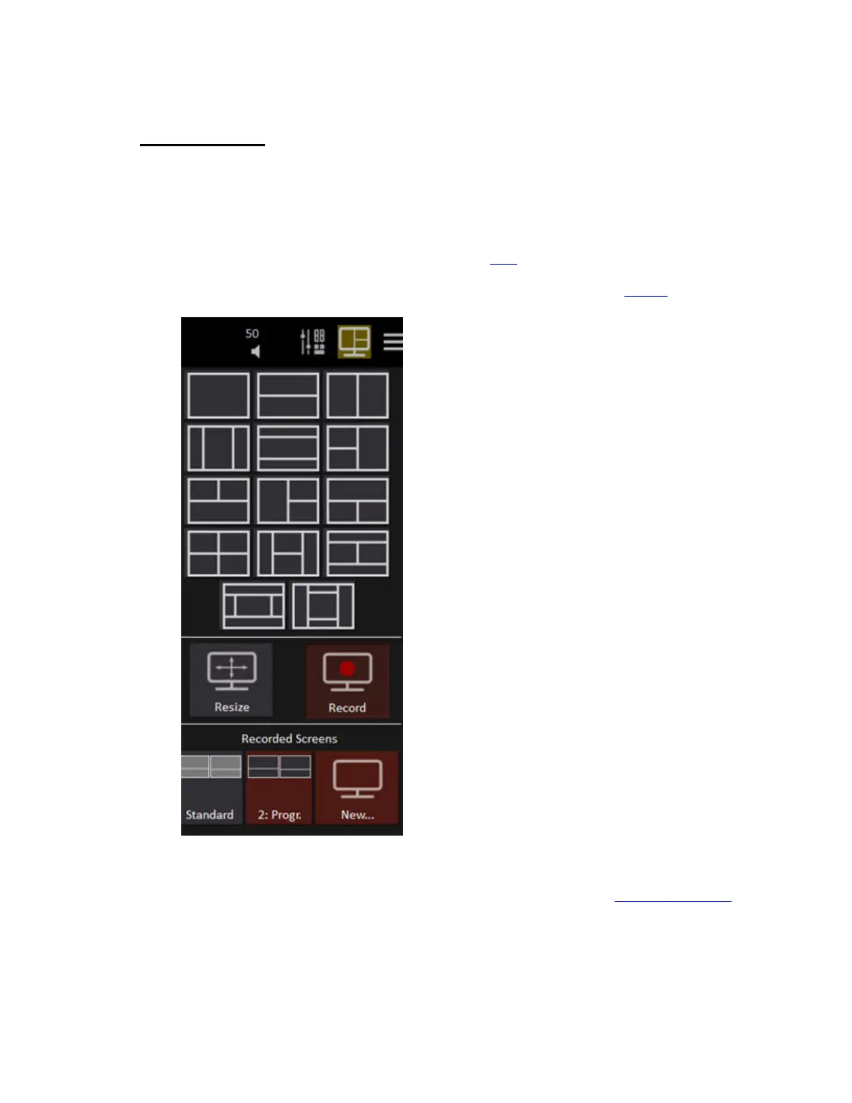 screen select buttons in the console, or use the RECORD option in this tab. See Screens