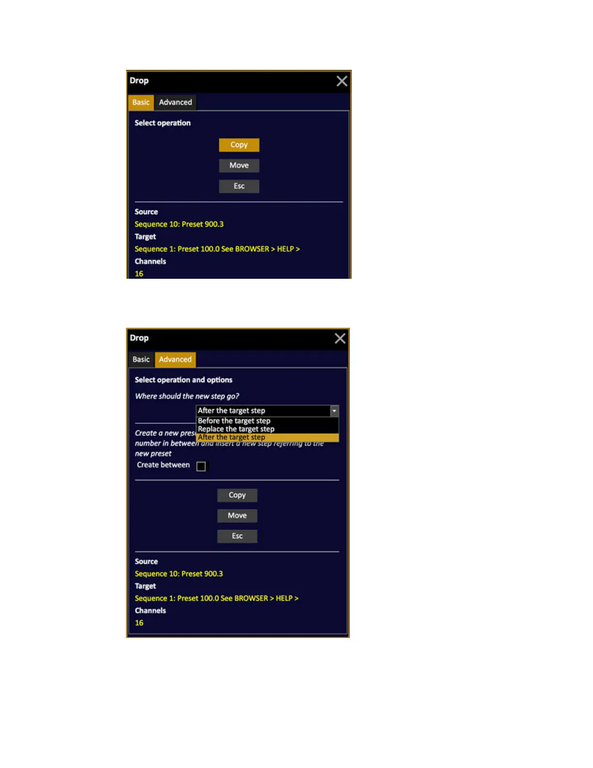 preset, before or after or replacing the step you dropped it on.