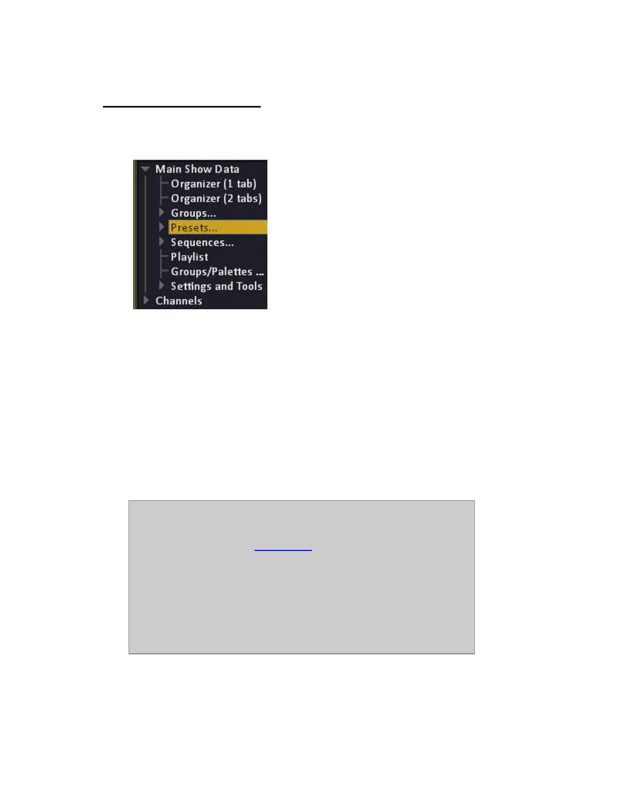 • Presets can be played back from the Master Playbacks, and the Main Playback one by one, or