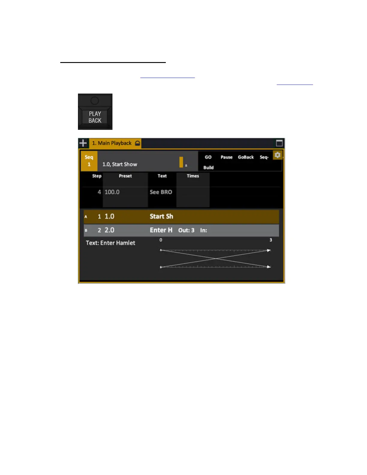 Press PLAYBACK in the Main Playback section to open the Playback tab. Theatrical style playback