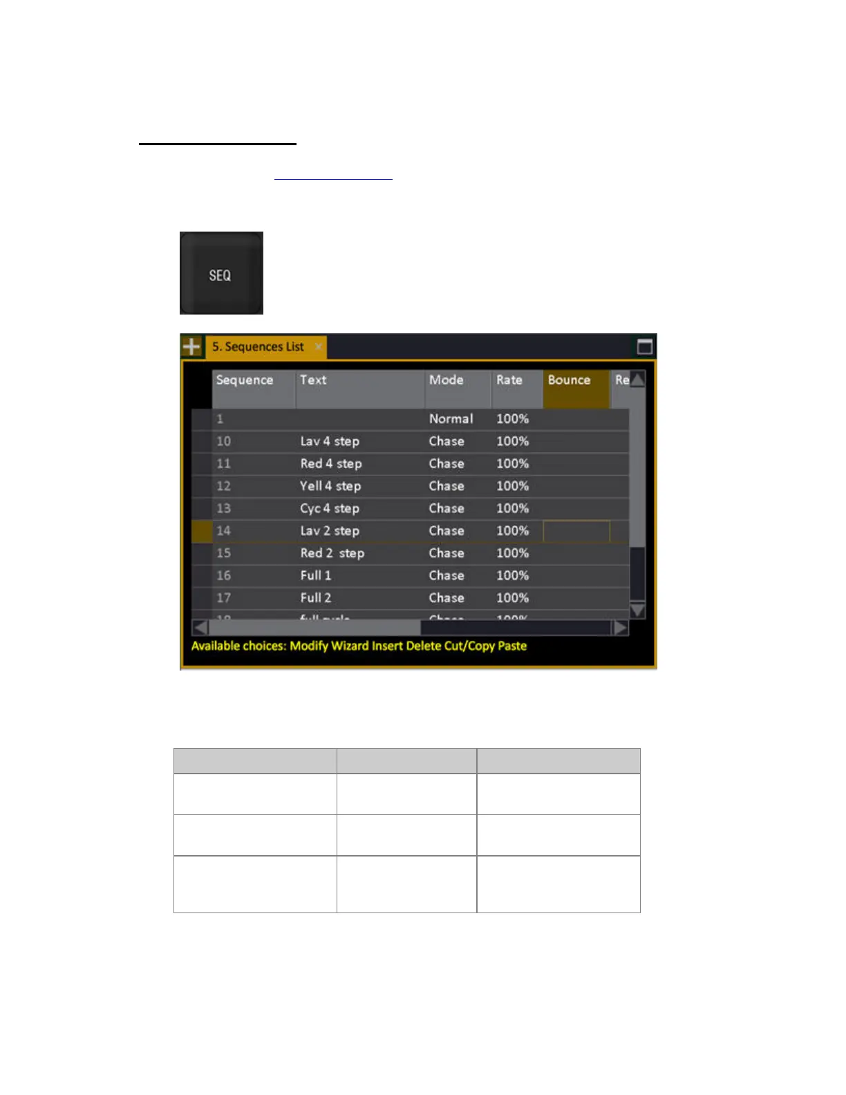 Press SEQ in the programming section to open the Sequences List. You can insert and delete
