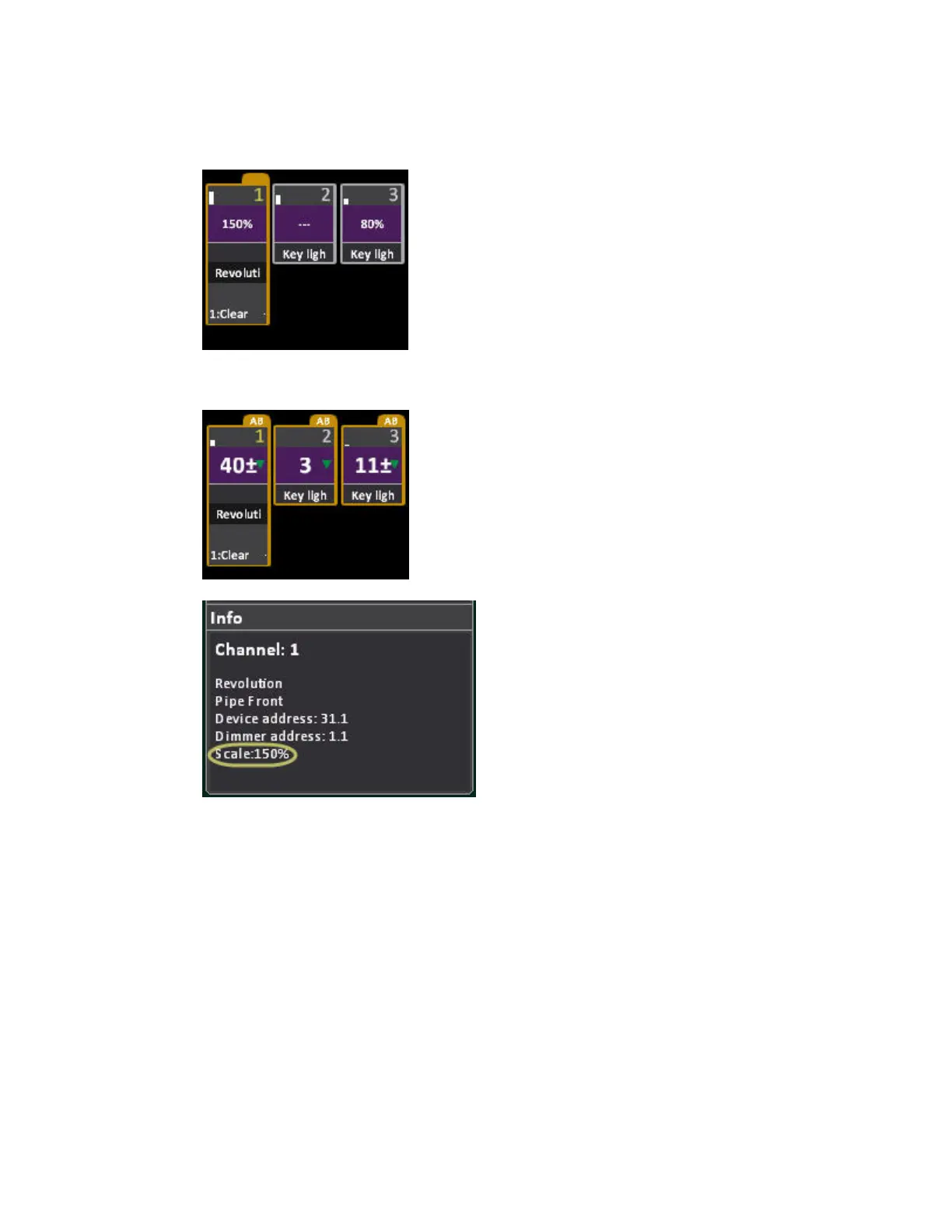 2. Use the level wheel to set the scale level 0-200% for the selected channel(s).