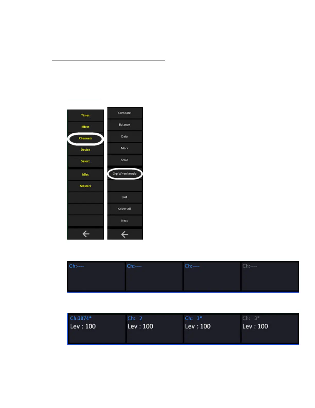 The GROUPWHEEL key in the Soft Keys makes it possible to assign a different/overlapping channel