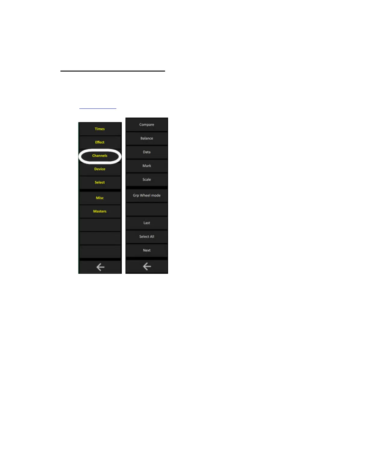 The CHANNELS soft key page provides a number of functions that are useful when working with