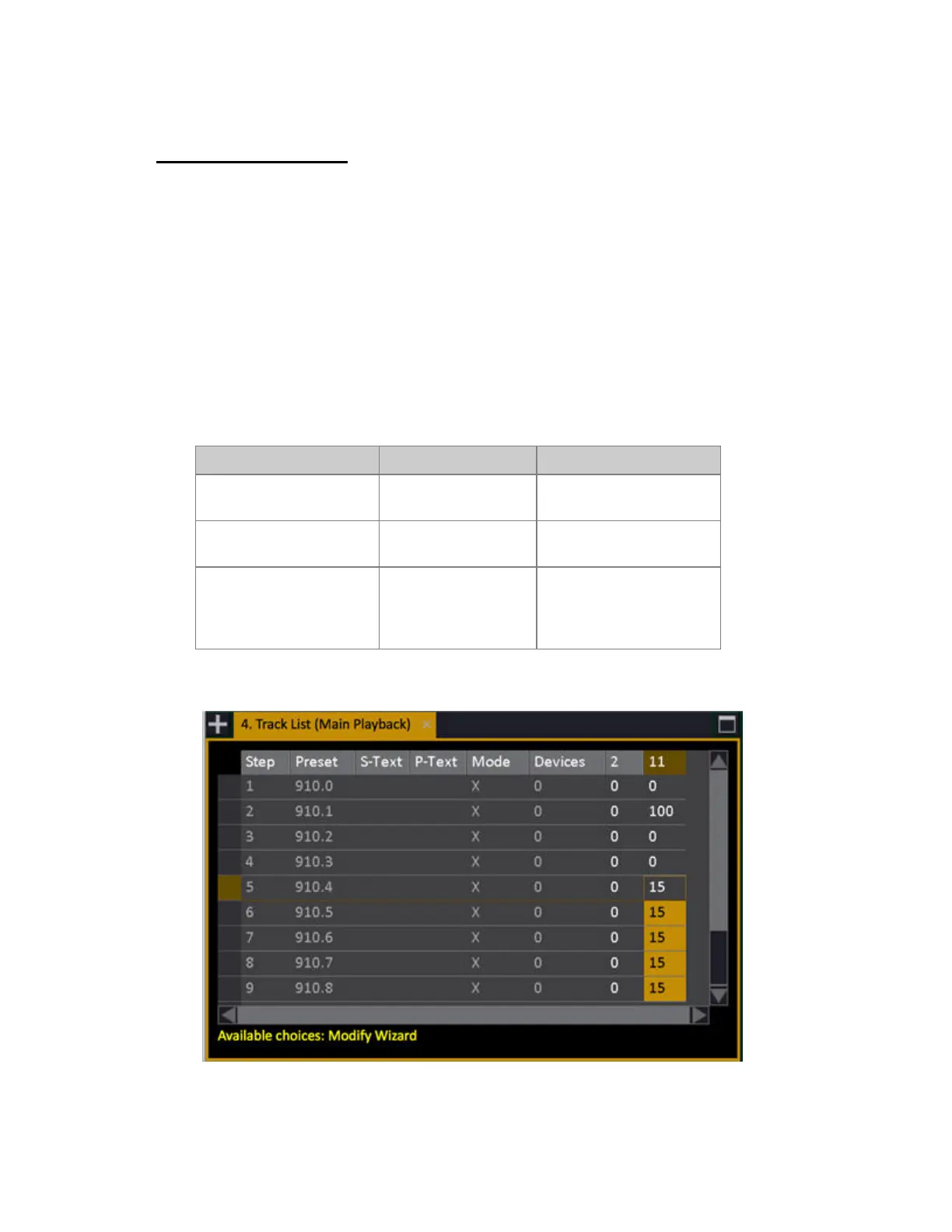 *Track list for the Sequence of the Main Playback