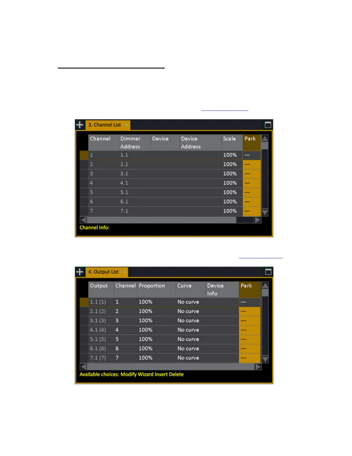 Parked values can be edited in the PARK column of the Channel and Output lists. Select the cell, enter