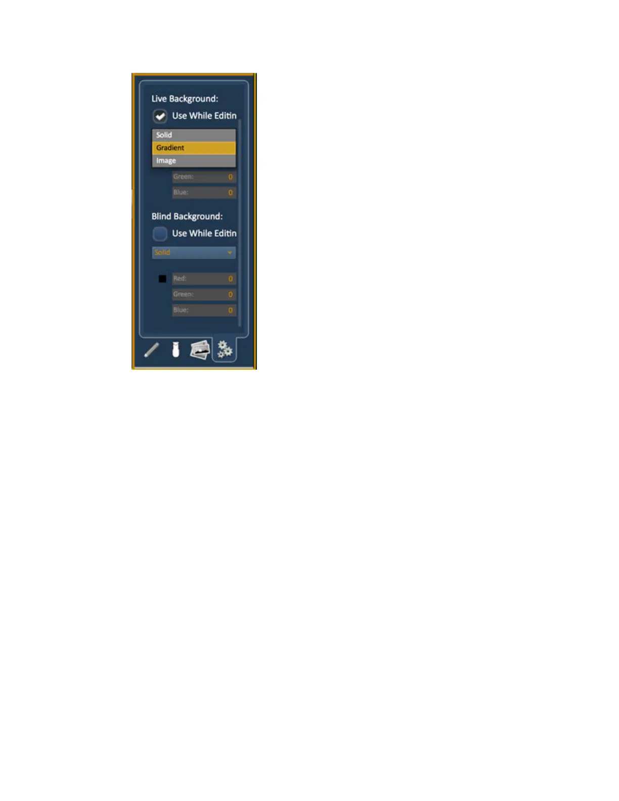 Gradient – select top and bottom colors and display will scale between the two colors