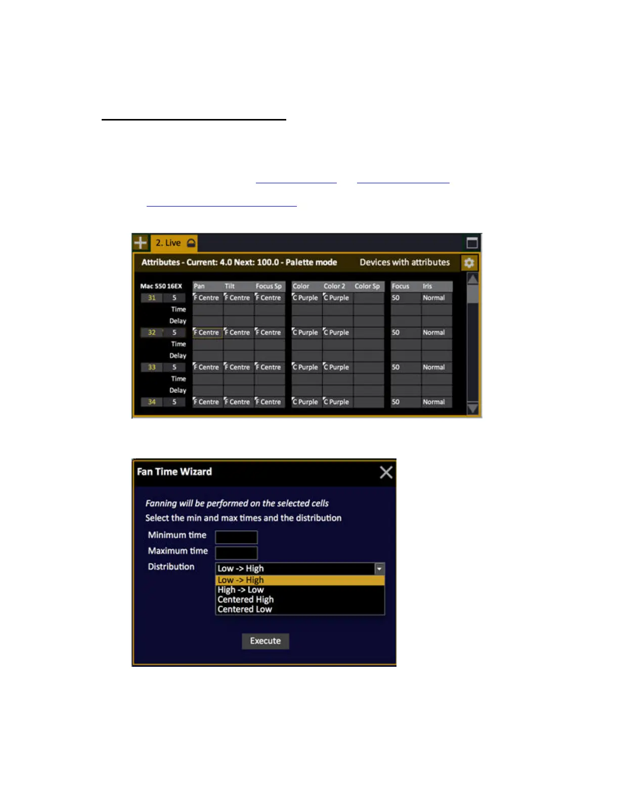 only open when a Time or Delay cell is selected. The selected cells are fanned between the devices.