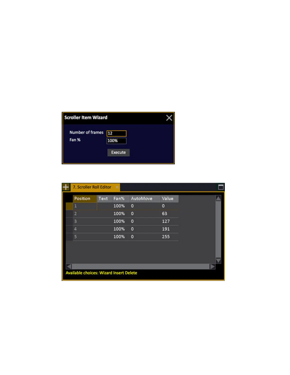 4. Press MODIFY in the Scroller Roll cell to open the Scroller Roll Editor. A Wizard is opened where
