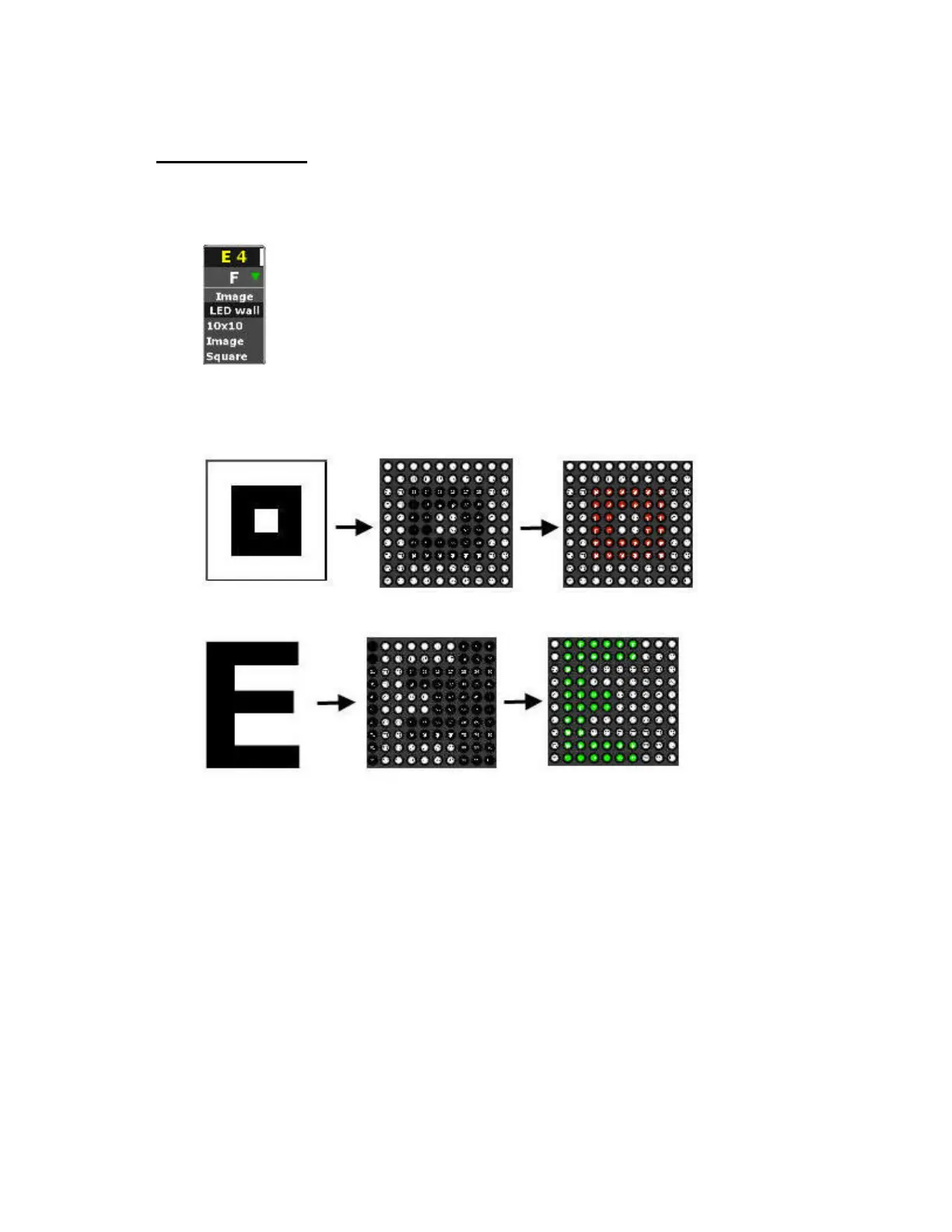 Text effect with the letter "E" mapped to intensity and then color in a 10x10 layout