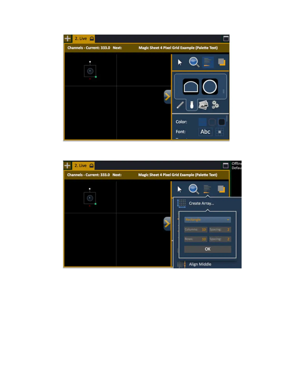 9. The pixels are laid out. Selext the pixels (drag left over them) and set a fill to white and connect to