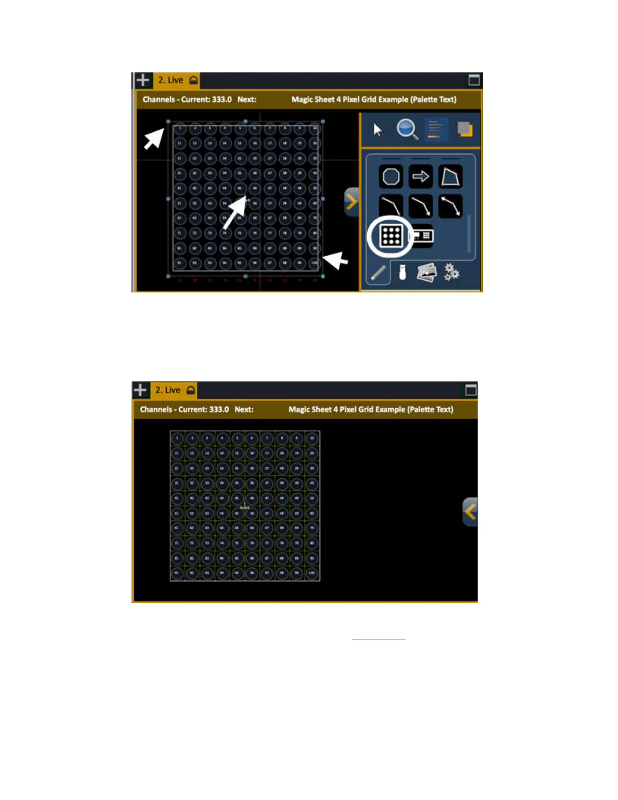 text, images and movies to play back over the grid.See Image effects