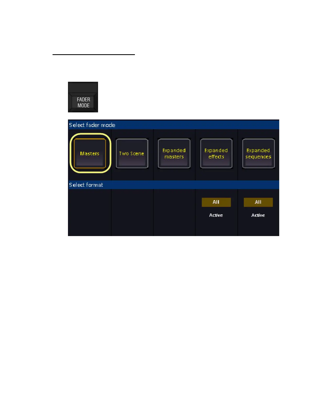 Press FADER MODE to select default Masters mode. You can press the keys above/under the