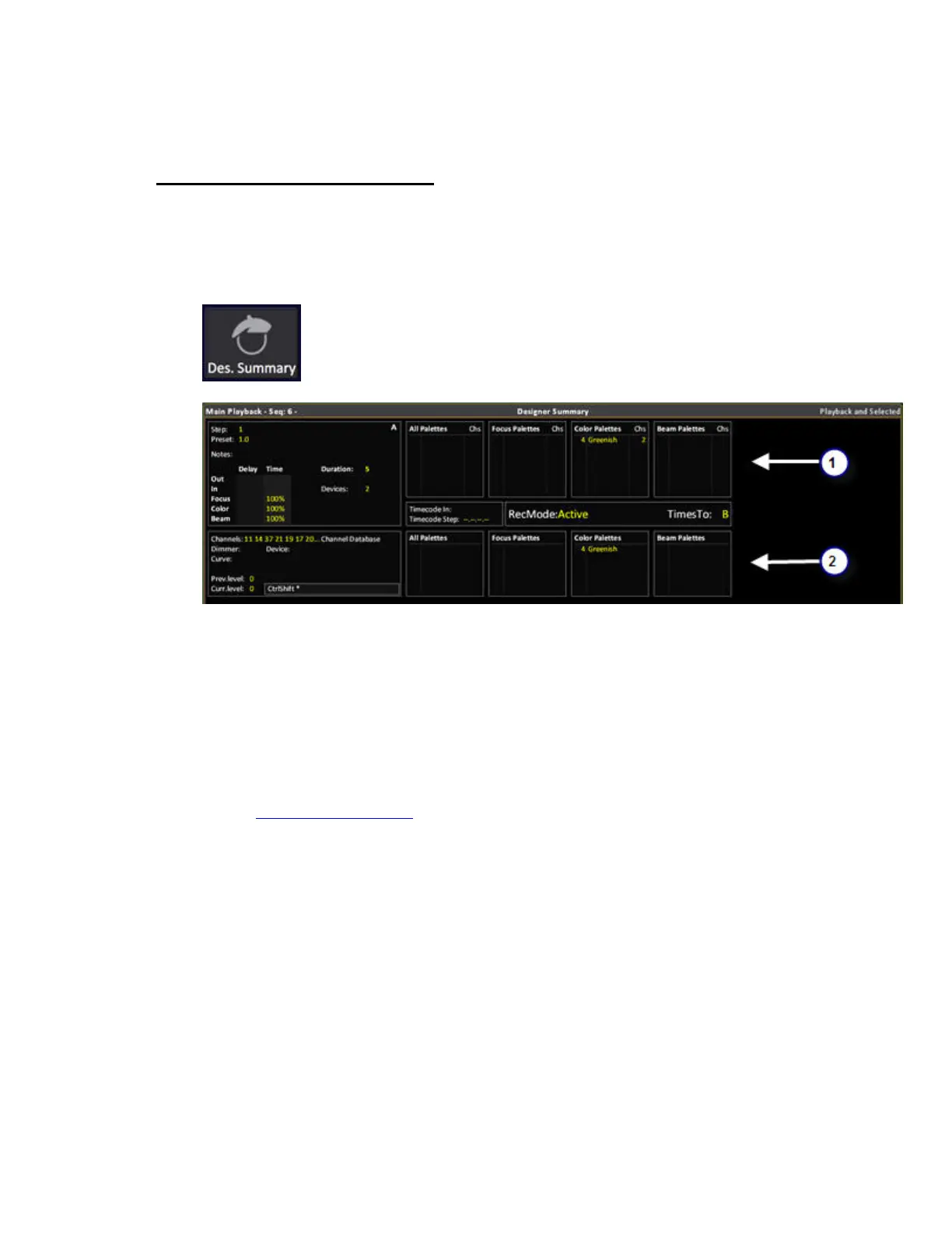 • Palette information for A or B depending on what is selected in the Crossfade Settings, see