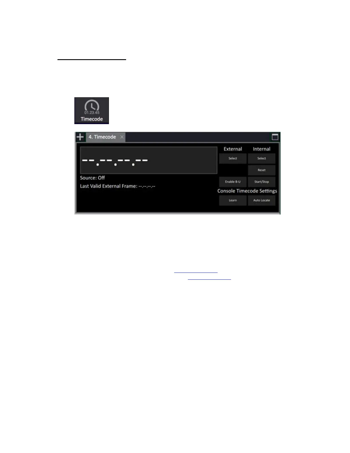 Console Time code Settings