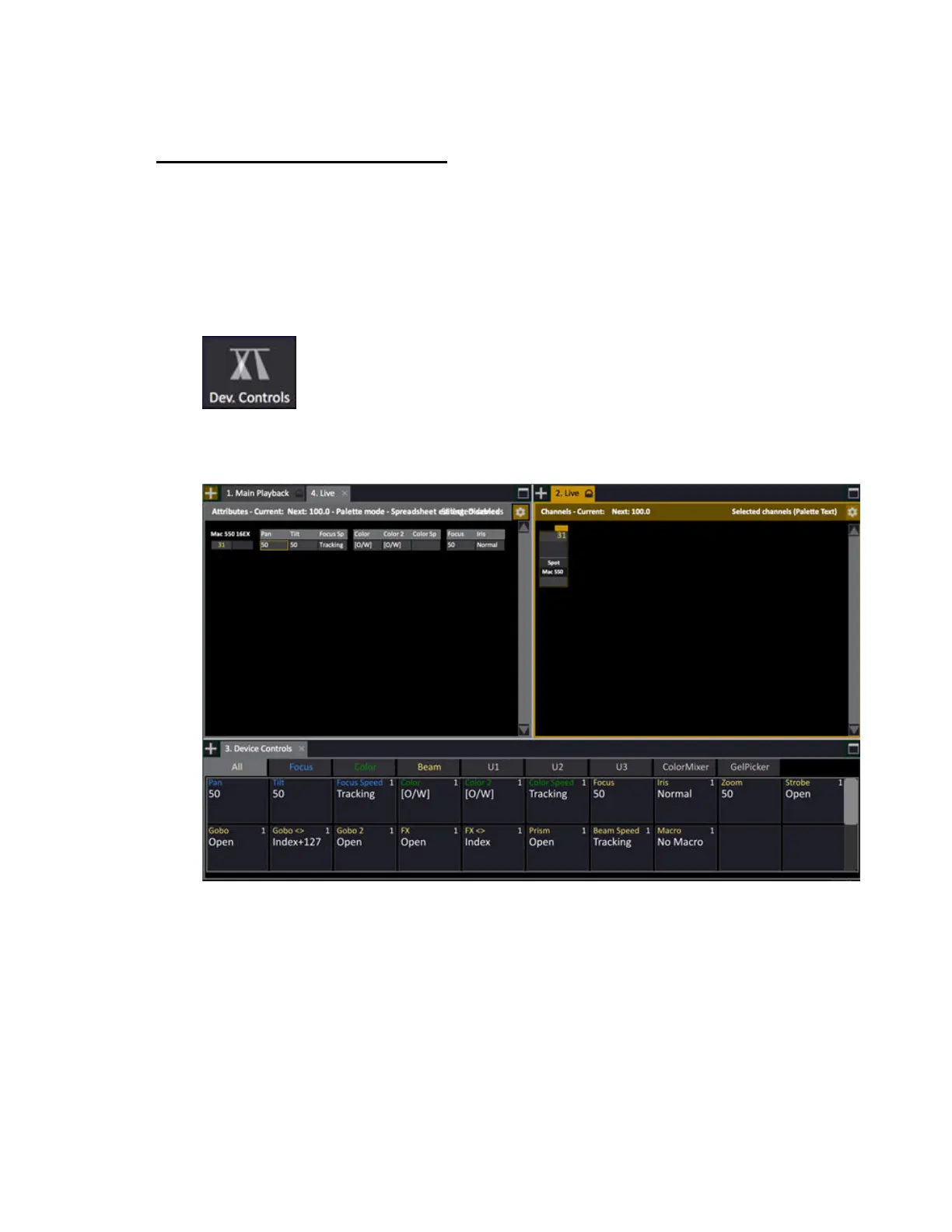 As soon as a device is selected, all non-intensity parameters are available in the Device Controls. In